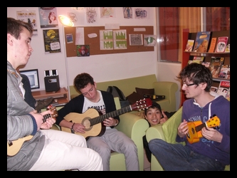 Interpellé par l’instrument qu’est le ukulélé et étant « zikos » pour deux, trois d’entre eux, les jeunes ont voulu apprendre à jouer de cet instrument hawaïen. L’après midi fut donc, entre autre, consacrée à l’initiation par l’animateur jeune à ce type d’instrument. Après deux trois accords faciles et différentes rythmiques, l’idée était d’arriver à jouer la célèbre chanson du magicien d’Oz « Somewhere over the rainbow » reprit et médiatisé par Israel Ka?ano?i Kamakawiwo?ole (un musicien et chanteur hawaïen). Qui sait, il se pourrait que vous entendiez quelques rifs de cet instrument très prochainement sur Val de l’Indre Fm…