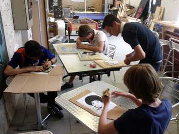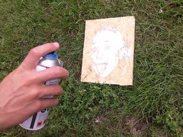 Avec le logiciel Photofiltre que vous pouvez télécharger librement, vous pouvez obtenir de magnifiques pochoirs tès simplement. Vous prenez une photographie, vous cliquez sur « réglage » puis sur « bichromie » et vous réglez le seuil. Ensuite vous imprimez la photo et avec un cutter vous découpez les zones noires. Vous fixer la feuille sur une planche de bois, vous prenez une bombe de peinture et c’est parti§ Voilà ce que çà peut donner avec quelques jeunes novices mais très motivés!