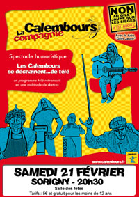 Après les dernières mises au point, ils ont le plaisir de vous annoncer que le samedi 21 février à partir de 20h30, vous pourrez venir découvrir à la salle des fêtes de Sorigny, la compagnie des « Calembours » dans un spectacle humoristique. Après de nombreuses dates dans tout le département, cette compagnie vous propose de retranscrir le programme télé en une multitude de sketchs. Petits et grands devraient être séduits par cette belle soirée en perspective. Alors venez nombreux…