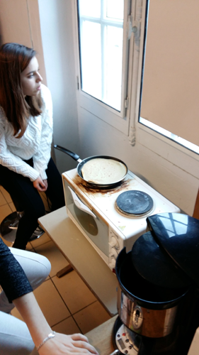 Et bien sûr, comme durant tous les temps d’accueil, que ce soit en période scolaire ou durant les vacances, les jeunes ont cuisiner et déguster leurs desserts favoris. Chandeleur oblige, les jeunes ont fait des crêpes et ont essayé de les faire sauter (avec quelques échecs, il faut bien l’avouer…)
