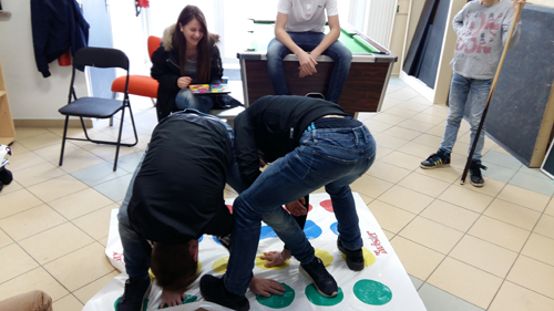 Bien sûr, les traditionnels billard, jeux de cartes et jeu de palets, les jeunes ont organisés une après-midi Twister. C’était l’occasion, durant cette journée de pluie, de pouvoir se défouler et s’amuser entre amis.