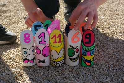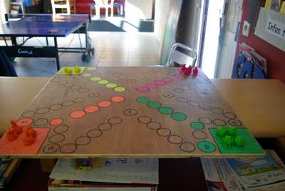 Heureusement, les jeunes sont bien plus efficaces lorsqu’il s’agit de bricolage. Le début des vacances à été marqué par la fabrication de « Tock ». Le tock est un jeu québécois inspiré de notre célèbre jeu de petits chevaux mais en beaucoup plus convivial ! Enfin les jeux de plateau c’est bien sympa mais la météo nous ayant gâtée lors de la deuxième semaine, les jeunes ont bricolé des jeux de plein air. Des molkky pour être plus précis. Et ils y ont mis du cœur, comme vous pourrez le voir sur les photos à suivre les jeunes ont pris soin de décorer leurs créations avec beaucoup d’originalité.