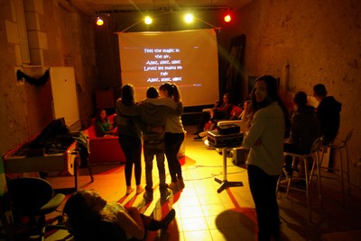Après une heure de réunion les jeunes ont partagé un repas. Pizza ! Simple mais efficace ! Il ne fallait pas perdre de temps ni d’énergie car le gros de la soirée était à venir ; le karaoké … Tout était prêt ; la sono, les canapés, l’écran géant, les micros … ne manquait plus que les chanteurs … Et nos jeunes bénévoles non pas mis longtemps à se lancer. Grosse ambiance autour d’une playlist très variée. Des sons en tout genre ont fais trembler l’accueil jeunes, des années 80 au rap en passant par des musiques plus actuelles, tous les répertoires ont été malmenées !