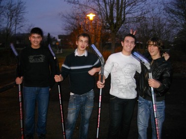 Samedi après midi les jeunes de Sorigny avaient besoin de se défouler… et comme les feuilles sur le parking de l’accueil viennent d’être ramassées, que le temps est un peu humide et que le goudron glisse un peu… toutes les conditions sont réunies pour organiser un match de hockey ! Finalement le match s’arrêtera avec la tombé du jour à 18h00 sur un score de 4 à 5. Un match tendu jusqu’au bout…