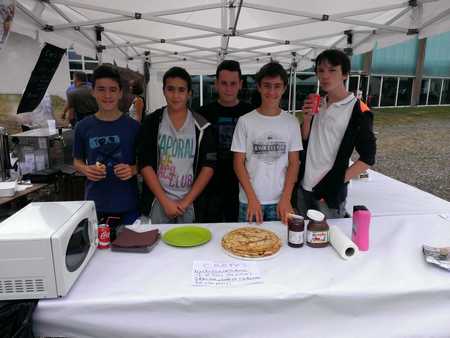 Sept membres de la Junior Association montoise se sont mobilisés pour mettre sur pied leur grande spécialité : la vente de crêpes. Le relatif manque de visibilité de leur stand ne les a pas empêchés de vendre la totalité de leur stock, plus rapidement encore que l’année précédente. Plus fort encore, ils se sont payés le luxe de récupérer deux baguettes de pain au stand voisin et ont terminé leur journée en vendant des tartines de Nutella ! Une première sortie qui lance idéalement cette nouvelle année scolaire. Mercredi prochain, ils tiendront leur AG à l’accueil jeunes. Vous aurez donc droit très bientôt à un petit retour sur ce sujet.