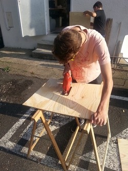 Afin que la communication de leur événement soit visible dans le commune, les jeunes ont créé des panneaux en bois. Par la suite, ils vont faire le tour des skate-parks de la CCVI ainsi que des villes aux alentours pour attirer un maximum de trottiriders !