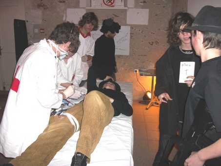 Les jeunes d’Esvres ont participé lors des vacances scolaires d’hiver, à leur première Murder Party à l’Accueil Jeunes d’Esvres. Après avoir passé une soirée inoubliable, ils ont décidé avec leur junior association Jeun’Z Park de proposer à d’autres accueils, de découvrir cet univers. Agés de 14 à 17 ans, ils ont donc organisé la première Murder Party à l’Accueil Jeunes de Veigné ce vendredi 9 avril de 16h à 22h. Après avoir aménagé les lieux pour qu’ils ressemblent à une cafeteria d’hôpital et un bloc opératoire, ils ont demandé aux sept jeunes vindiniens participant à la soirée, d’aller se déguiser. Une fois les règles du jeu expliquées, Drake et Gail Remoret, Sean Carter, Tom le précheur, Jonathan Costa, Richard Berkelet, et Mr Parlowski ont alors enquêté toute la soirée pour élucider un meurtre et un trafic d’organes en plein milieu d’une prise d’otages. Entre jeu de rôle, théâtre, et bonne rigolade, l’enquête a duré près de cinq heures. Les jeunes de Veigné ont beaucoup apprécié cette soirée originale et tous désirent recommencer très vite.