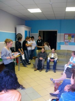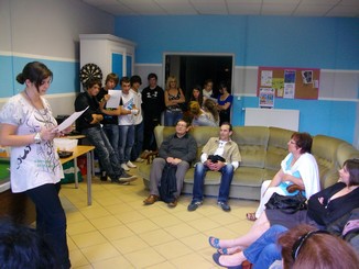 Les jeunes ont présenté oralement leur séjour devant une dizaine de parents. Ils ont expliqué la naissance du projet, les activités (accrobranche, catapulte, simulateur de glisse, disneyland), la journée type, le planning de la semaine, les règles de vies et le budget. Pour finir cette réunion jeunes, parents et animateurs (Adeline Fouquet, directrice de séjour et Benoit Bourbon, animateur) se sont retrouvés autour d’un pot.