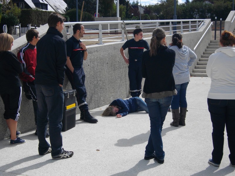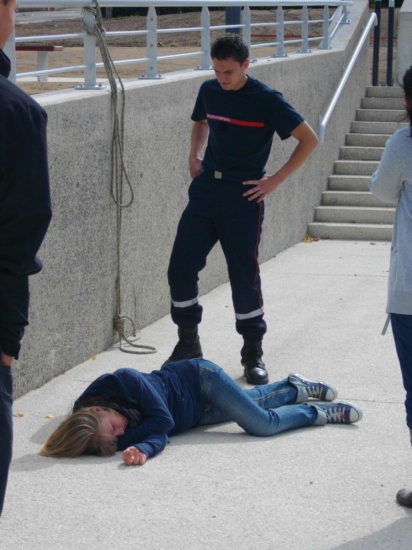 Si l’ambiance était plutôt studieuse au début de la formation, les pompiers bénévoles Laurent et Thomas, ont vite mis l’ambiance notamment lors des cas pratiques. Et pour rendre ces derniers encore plus crédibles et mettre les jeunes en situation « presque » réelles, le maquillage et les effets spéciaux étaient de mise ! L’hémoglobine a coulé a flot !!!
