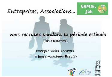 ça y est, la période des jobs d’été redemarre. De nombreuses offres sont consultables dans tout les accueils jeunes de la CCVI, au Point d’Information Jeunesse du Val de l’Indre et surtout, pour la première année sur le site dédié aux emplois saisonniers