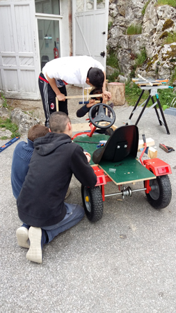 Il ne reste plus qu’au groupe de jeunes de décider qui seront les pilotes de la course de caisse à savon organisée le 28 mai prochain à Monts.. Il reste encore un peu de travail à effectuer pour que la caisse à savon de Truyes soit définitivement prête : Finir la « carrosserie » ainsi que la décorer.