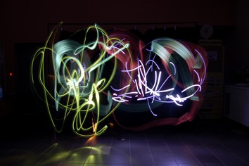Cette animation s’est déroulée en deux temps: le premier avait pour but de faire comprendre le mécanisme du light painting aux participants puis de les laisser tester par eux-mêmes les possibilités de ce procédé. Le second consistait à réfléchir aux photos qu’ils voulaient faire (en passant par une phase papier) puis à les réaliser… Plusieurs essais étaient parfois nécessaires mais le rendu final est plutôt bluffant !