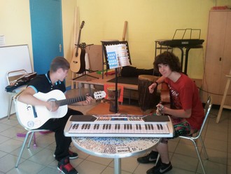 Cet été à Monts, les jeunes ont pu profiter de la structure et des alentours sous un soleil et une chaleur éprouvante. Au programme, activités sportives sur le city stade (doucement et avec des bouteilles d’eau à portée), et lorsque le soleil devient trop menaçant, on se réfugie au frais dans l’accueil jeunes pour déguster une bonne glace ou une boisson fraiche. Entre deux parties de Cranium délirantes, on peut aussi s’essayer à divers instruments de musique, dont une guitare, un ukulélé, des percussions et des claviers éléctroniques… De quoi s’amuser, tout en laissant exprimer sa créativité. D’ailleurs, quelques jeunes ont déjà aménagé une mini scène pour s’y croire encore plus, avec l’espoir d’en réaliser une plus solide et plus grande plus tard.