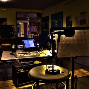 C’est dans la lumière feutrée de la salle d’activités de l’Accueil Jeunes qu’ont lieu depuis les vacances de la Toussaint des enregistrements de chansons et morceaux de musique interprétés par de jeunes musiciens amateurs… En gros, on choisit une chanson et on choisit son instrument favori, puis on recherche les paroles et les partitions sur internet, on imprime tout ça et on les retravaille jusqu’à ce que l’interprétation soit possible. Pour les plus timides, on prend un peu plus de temps pour découvrir chaque instrument ou on se concentre sur le côté technique grâce à l’interface d’enregistrement ou aux logiciels de MAO. Pour les plus aguéris, on passera directement à l’étape d’interprétation, voir de composition. Lorsque les morceaux sont terminés, enregistrés, retravaillés, finalisés, les jeunes peuvent récupérer leur prestation sur clé usb.