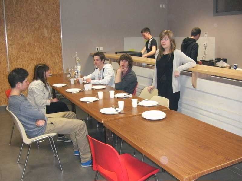 Cette période de vacances est souvent synonyme de veillée à l’accueil jeunes. Le principe : deux jeunes sont en charge d’un repas dont ils déterminent le menu pour tout un groupe. De cette façon, ils peuvent commencer à s’entraîner pour leur séjour du mois de juillet. Le thème de ce repas était : Hamburgers-frites. Et là, vous vous imaginez immédiatement une horde de jeunes dévorant des sandwiches artificiels d’une célèbre chaîne de fast-food, la bouche dans l’assiette, de la sauce plein les doigts. C’est vrai, ça existe. Mais, ils peuvent aussi faire les choses autrement et réaliser avec prouesse de très bons hamburgers, harmonieusement garnis et très présentables, servis avec des frites cuites à point grâce à la friteuse prêtée par leurs homologues de Do It Yourself. L’animateur et les autres convives ont unanimement reconnus la prestation de grande qualité des deux cuisiniers. La note d’ensemble est cependant rabaissée par la cuisson trop prolongée du gâteau au chocolat servi pour le dessert. Pour des raisons évidentes, nous vous épargnerons également sa photo. Après le rangement et la vaisselle, la soirée s’est prolongée avec un Time’s Up Familliy. La digestion pouvait commencer.
