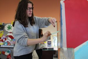 Avec peinture et pinceaux, boîtes de récup’ et pistolet à colle, les jeunes ont fait de petits travaux à l’accueil.