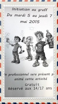 La première sera une initiation au graffiti animée par un professionnel. Elle aura lieu du mardi 5 au jeudi 7 mai 2015. Durant trois heures, les jeunes inscrits à l’accueil jeunes pourront y participer gratuitement.