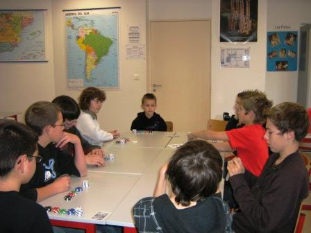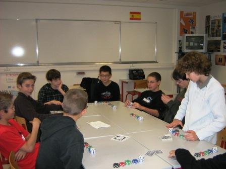 L’intervention au collège de Cormery, par l’animatrice Caroline de la CCVI, continue de nouveau cette année. Cependant ce n’est plus un atelier de théâtre mais un atelier poker et jeux de cartes qui est proposés aux élèves du collège. Cet atelier permet aux jeunes de découvrir, de participer, d’initier,… les amateurs de poker. Mais il y a aussi de disponible d’autres jeux de cartes telle que des jeux de tarots, belotes, Uno,… ou autres variantes possibles de ces jeux. Puis sera mis en place après les séances d’initiation des tournois sur une heure au sein de l’atelier mais en attendant faut s’entraîner!!!