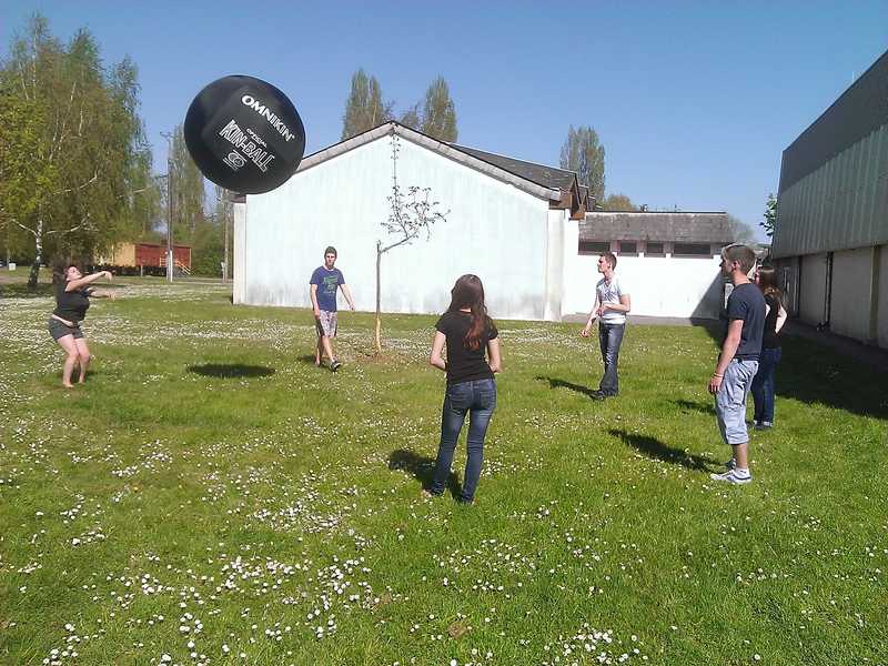 Il est arrivé. Sa forme initiale a de quoi laisser perplexe. Une baudruche longue de 40 cm et étonnamment lourde accompagnée d’une grande enveloppe en nylon, qui s’assemblent pour former un ballon. Plusieurs questions viennent spontanément à l’esprit. « Comment la baudruche peut-elle gonfler pour atteindre le même diamètre que son enveloppe? Risque t-elle de nous éclater à la figure? Une fois gonflé, comment faire en sorte que le ballon ne perde pas d’air? ». Et puis, l’impatience prend le dessus. Le simplissime mode d’emploi inspire confiance, cela vaut donc la peine de se lancer. A l’aide du compresseur des services techniques de la commune, le gros bout de plastique se transforme petit à petit en un gigantesque ballon d’un 1.22 de diamètre. On sert bien l’extrémité avec une cordelette et c’est parti pour le premier essai. Si le kinball, dont nous vous dirons tout dans un prochain article, est un sport à part entière, apprendre à maîtriser le ballon et à le renvoyer en est un autre. C’était donc l’objet de cette première séance de découverte. Sans aller plus loin, la rigolade est déjà au rendez-vous. L’initiation au kinball viendra juste après. A suivre…