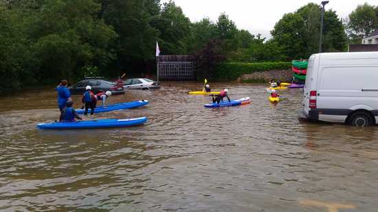 A 17h00, chacun s’accordait à dire que l’eau ne monterait pas jusque dans le local de Monts. A 23h30, le pronostic avait changé et tout laissait à croire qu’un passage de raclette s’imposerait les jours suivants. Et ce d’autant plus que le parking du Spadium voisin se remplissait d’eau à vue d’œil de façon improbable, coupé de la rivière qu’il était par la rue du val de l’Indre surélevée.