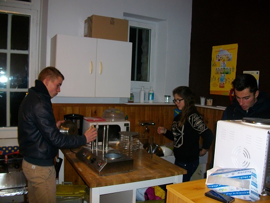 Les jeunes se sont répartis les rôles, certains se sont chargés de l’épluchage-découpage des pommes de terre afin de retrouver de l’authentique (ça nous change des frites surgelées et autant dire que ça n’avait rien à voir niveau goût !), d’autres se sont chargés des hot-dogs et d’autres ont pris en main l’aménagement de la salle et la technique.