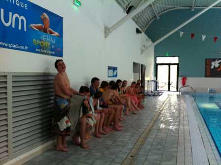 Pour pouvoir partir en séjour d’été et se mettre à l’eau, les jeunes ont l’obligation de passer un test d’aptitude à la pratique des activités nautiques et aquatiques en centre de vacances. Il est effectivement indispensable de savoir nager lors que l’on s’apprête à faire de la bouée tractée, se rendre dans un parc aquatique ou se baigner en pleine mer. Chaque printemps, le service jeunesse de la CCVI prévoit un temps spécifique à destination du public concerné. Cette année, Rémi Baudin, animateur de l’accueil jeunes de Monts a rencontré Julien Marignier, directeur du Spadium, pour organiser ces tests ainsi qu’une initiation au water-polo. Jeudi 24 avril, ce sont vingt-trois jeunes, venus de Truyes, Esvres, Sorigny Artannes et Monts, qui se sont jetés à l’eau sous l’oeil de deux maîtres-nageurs du centre aquatique. Ils étaient ensuite invités à sortir leur pique-nique, lors d’une pause à l’extérieur, sur les espaces verts. Une petite respiration avant de retourner à l’eau une heure après, pour une séance de water-polo menée par Benjamin, le chef de bassin. Trois équipes de huit se sont rencontrées à tour de rôle sur un terrain d’environ seize mètres de long. Ce sport, véritable handball aquatique, met à contribution tous les muscles du corps, sans répit. Les règles avaient bien sûr été assouplies et le temps de jeu raccourci pour cette séance de découverte. Pas besoin d’en rajouter, les organismes ressortent rarement indemnes de ce type d’activités.