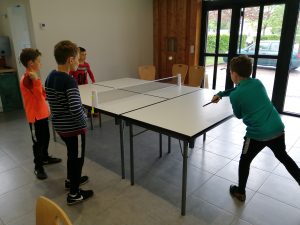 Malgré les trombes d’eau à l’extérieur, on s’adapte ! On délaisse le terrain de foot et on s’organise un tournoi de tennis de table !